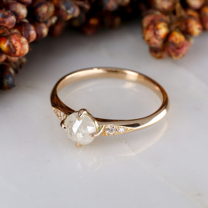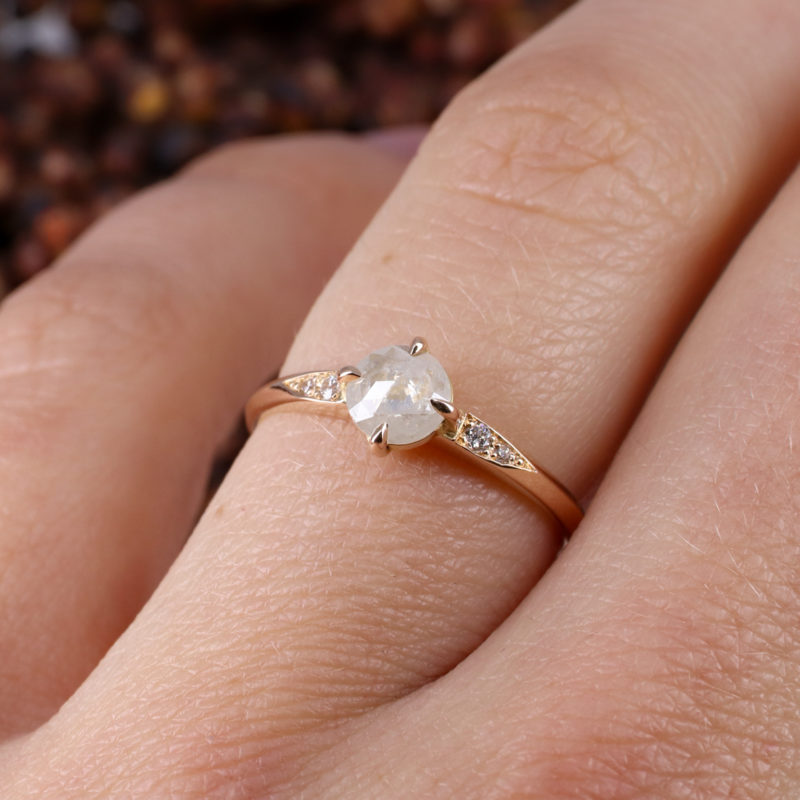 - The rose cut diamond is from one of our ethical suppliers and is set in 100% recycled gold.