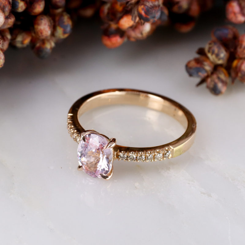 18ct rose gold Rise Engagement ring with Dusky Pink Sapphire