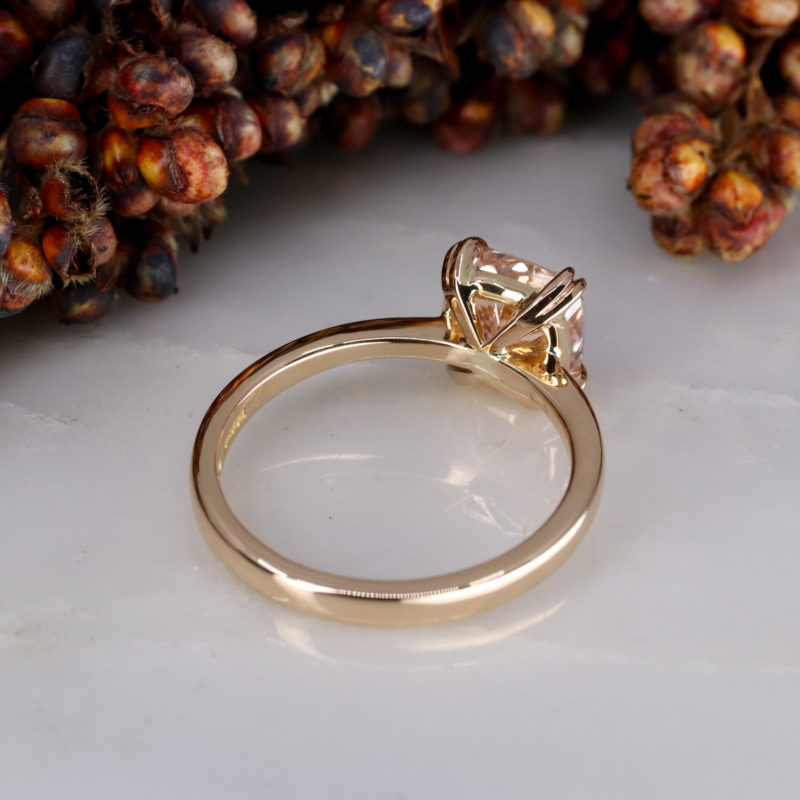 - An incredible 2.05ct cushion cut peachy-pink lab-grown diamond is the star of the show in this simple solitaire.