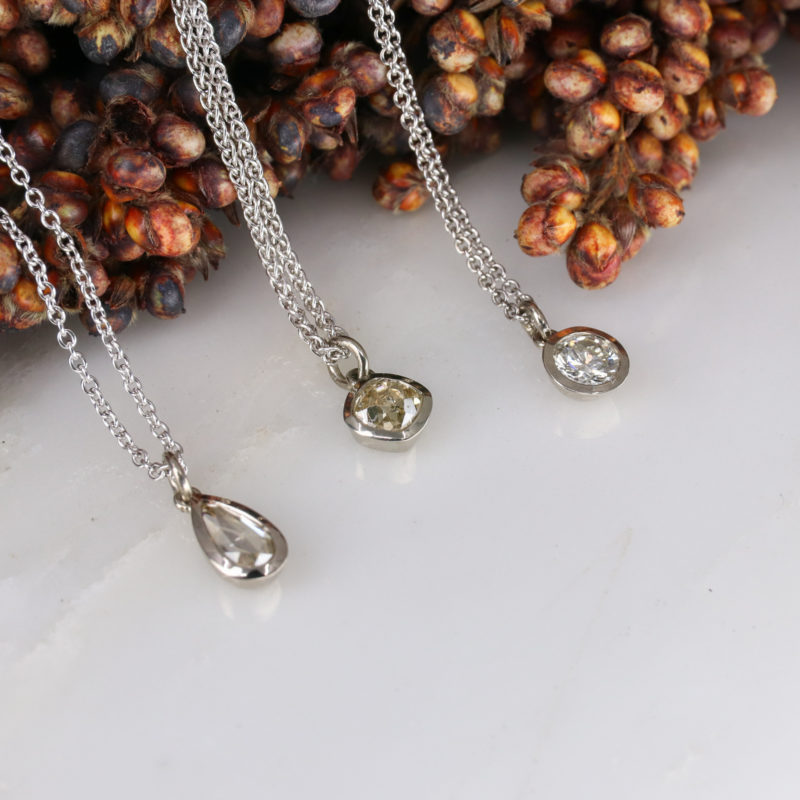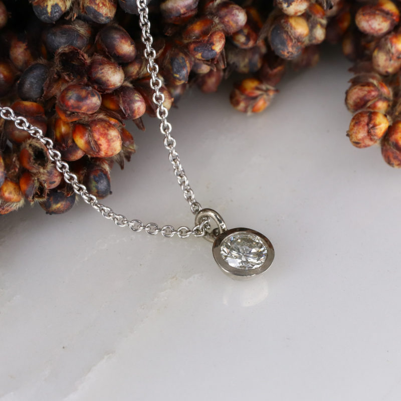 - The loose pre-loved diamond has been fully assessed by our goldsmiths and beautifully re-imagined into this delicate pendant.