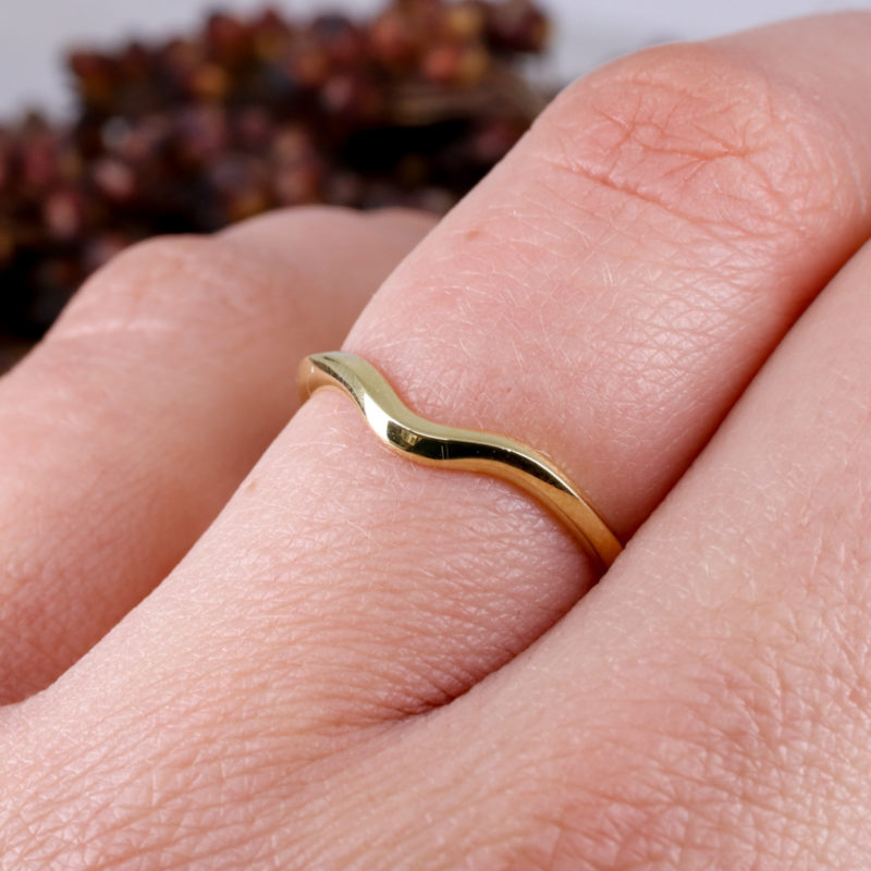 - Our fine Coco wedding band is 1.7mm in width, with a subtle c-shape wave designed to hug an engagement ring central stone.