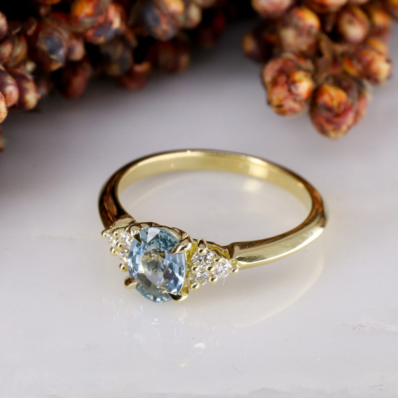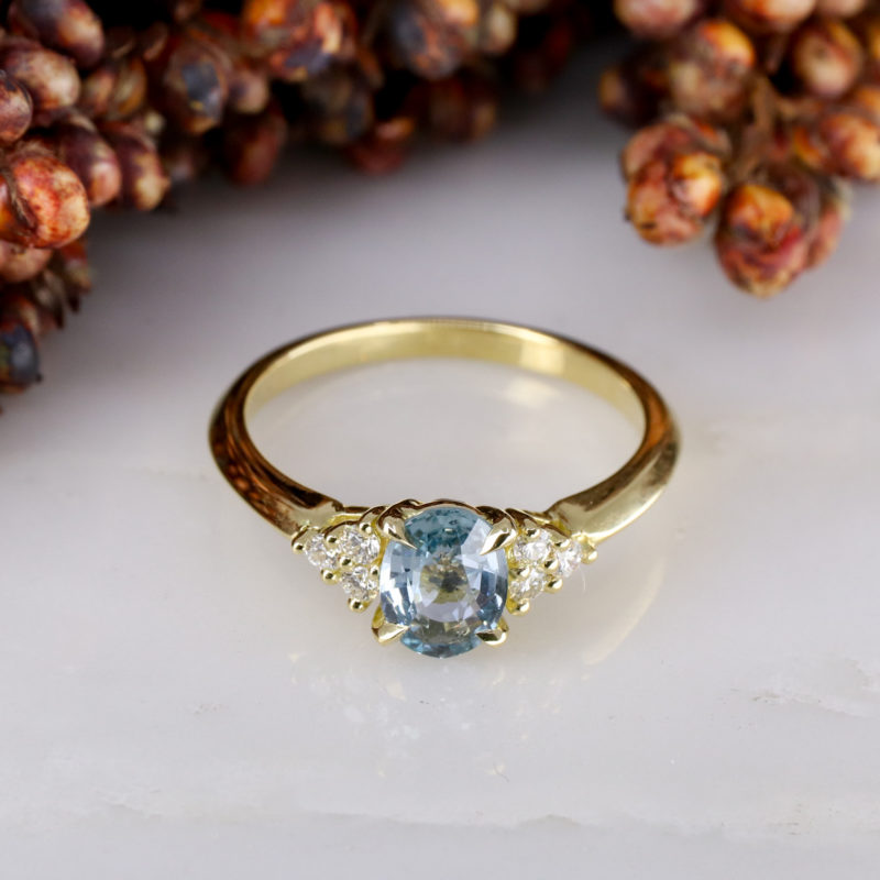 - The teal sapphire is unheated, showing the natural blue-green colour of the rough material - it's stunning!