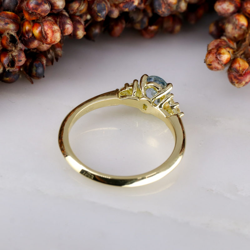 18ct yellow gold Mini Coco Cluster engagement ring with Teal sapphire