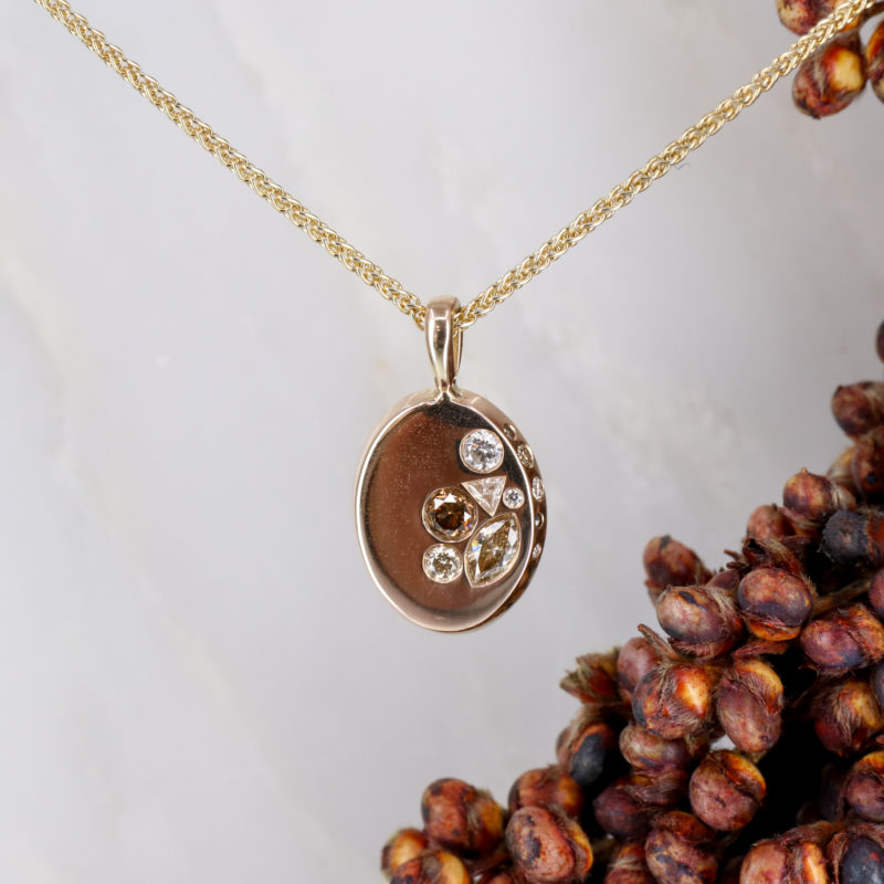 9ct yellow gold Cascade pendant with chocolate, cinnamon and white diamonds