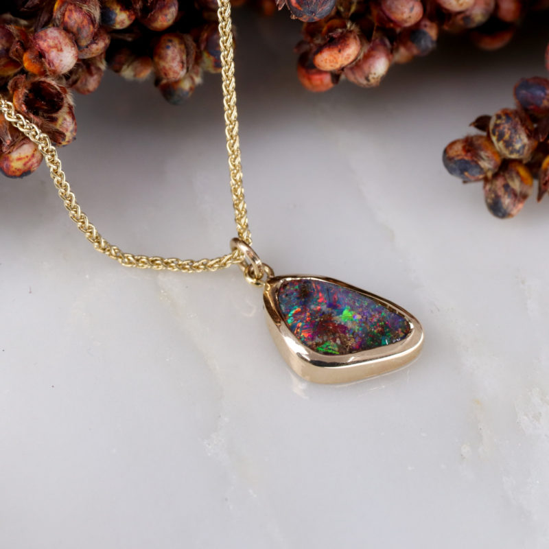 9ct yellow gold freeform Australian ‘Embers’ Opal pendant
