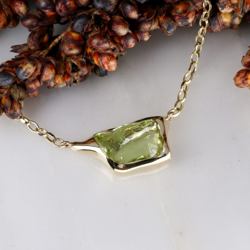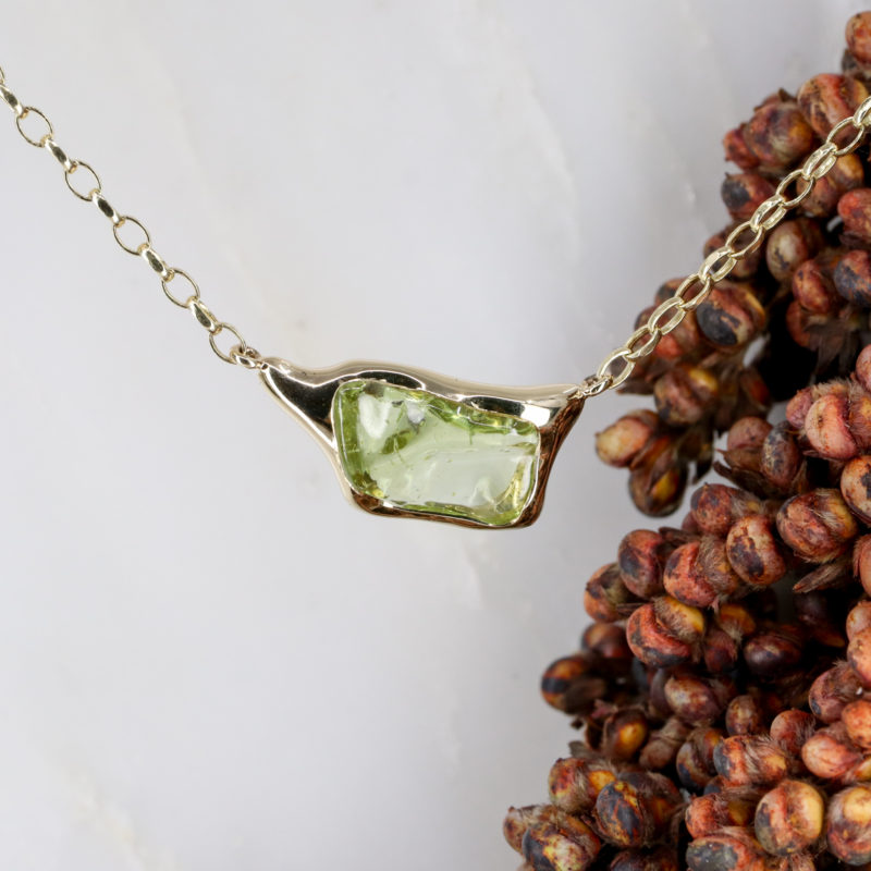 9ct yellow gold Jelly bean pendant with Freeform green sapphire