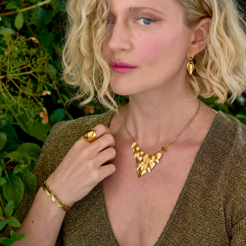 - The layered arrangement of the leaves evokes the natural growth and intertwining patterns of ivy vines, giving the necklace a flowing, organic elegance that feels both dynamic and harmonious.
