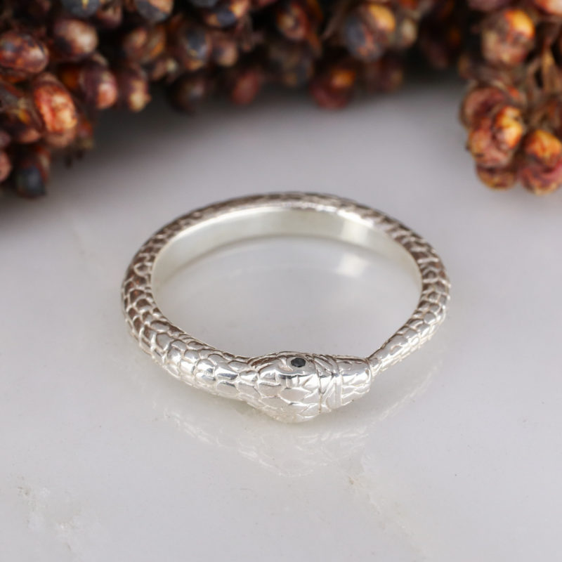 - The snake is made in sterling silver and forms the perfect ouroboros circle, symbolising eternal love.